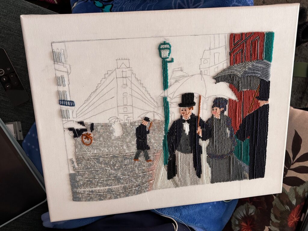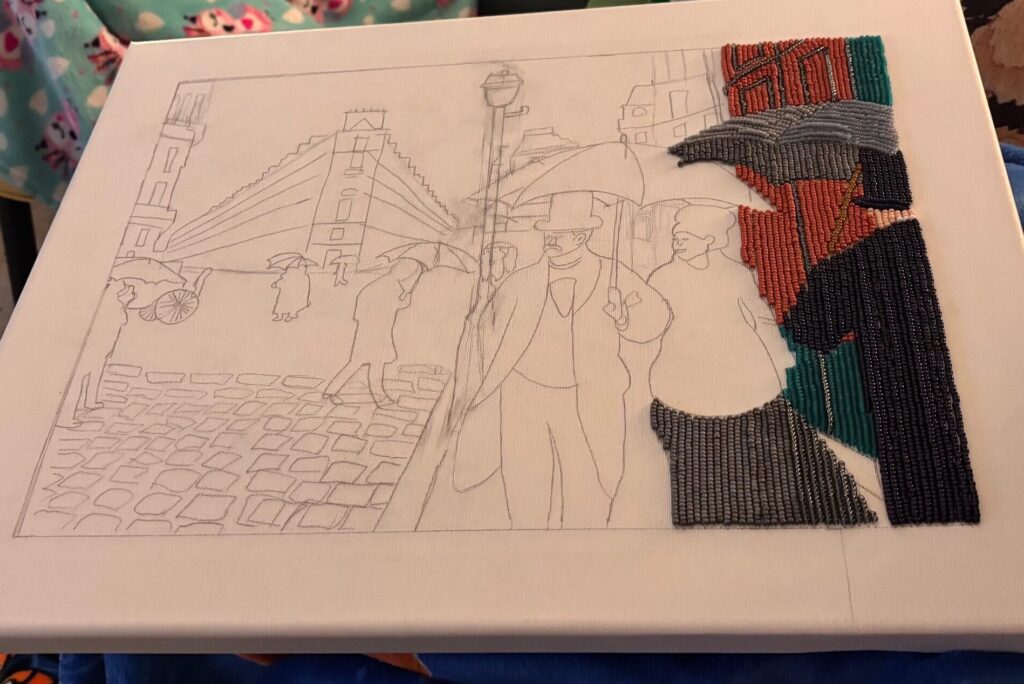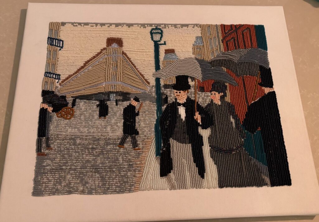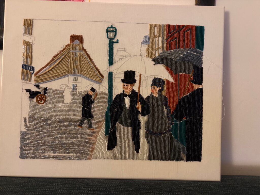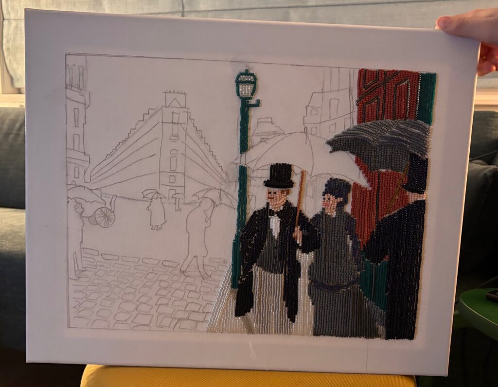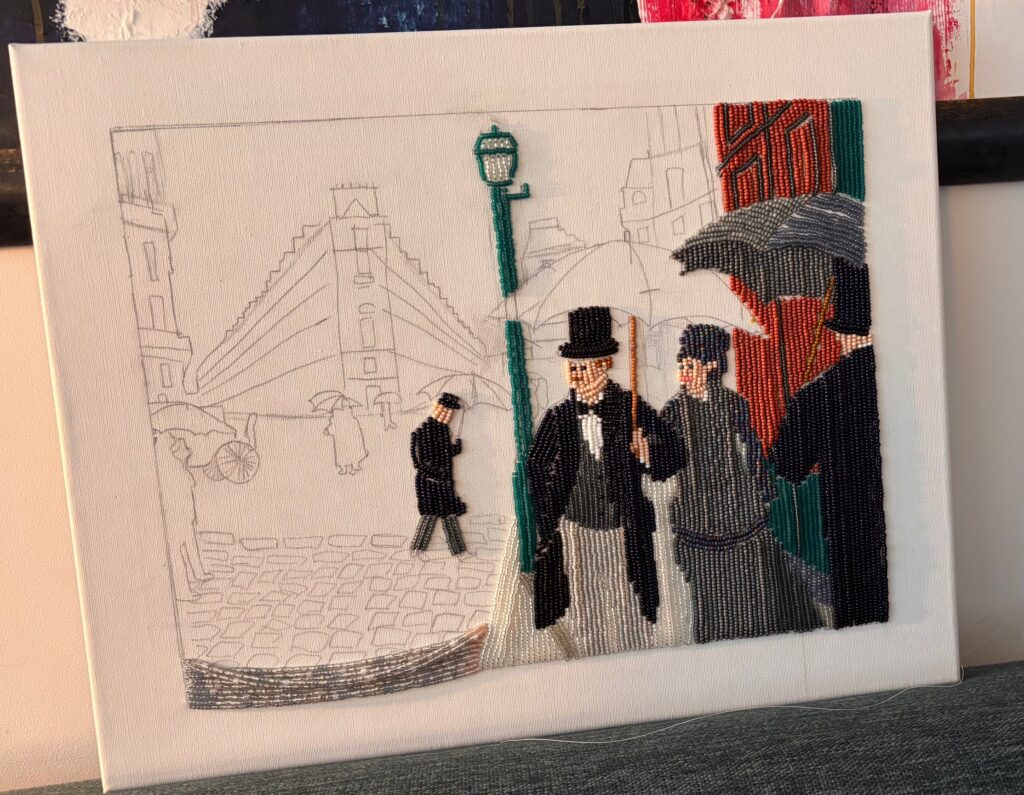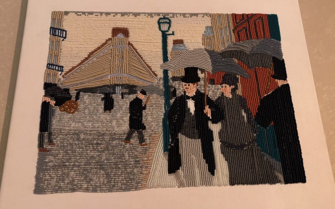 We received an email from Karin with the beautifully school project “Art with a Different Touch” by her daughter Julia (15 years old, College Atheneum Hageveld in Haarlem, the Netherlands). Julia used the painting “Paris Street, Rainy Day” as inspiration and transformed it into a Miyuki bead version. We think it’s incredibly beautiful and creative, and we’re happy to share these kinds of stunning artworks with you!