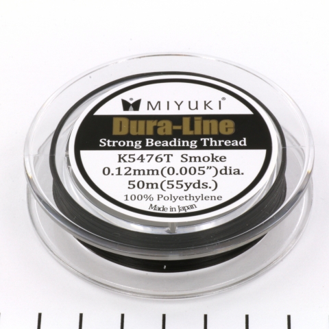 This Dura-line beading thread is recommended for high-tension beading projects. It’s a thin, yet very strong, flexible thread that works very well with beading patterns requiring higher tension. It’s still thin enough to work with small beads, but it can withstand a lot of force. It doesn’t stretch, threads easily through a size 12 needle and is easy to make a knot when finished.