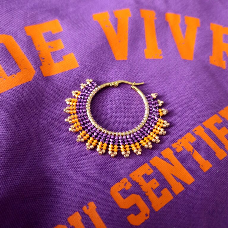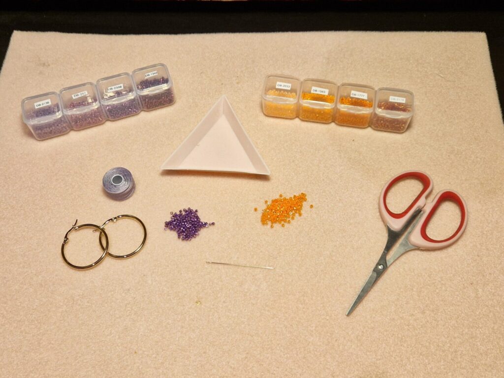 – Miyuki delica 11/0 beads (In this example I chose orange and purple);