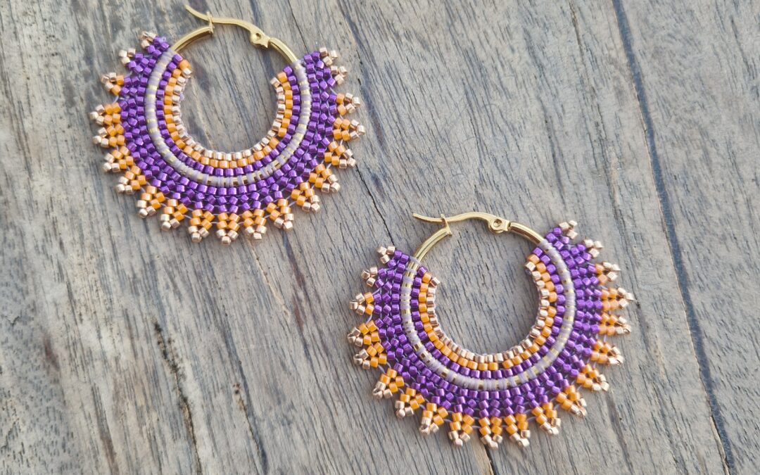 – Miyuki delica 11/0 beads (In this example I chose orange and purple);