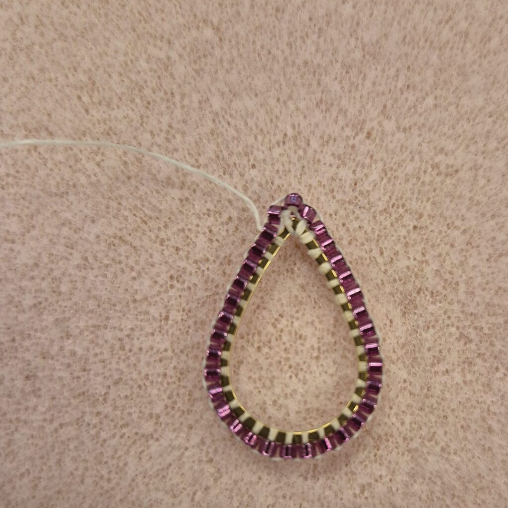 Continue until you’ve gone all the way around. Leave the top of the earring free so it’s easier to attach a stud later.