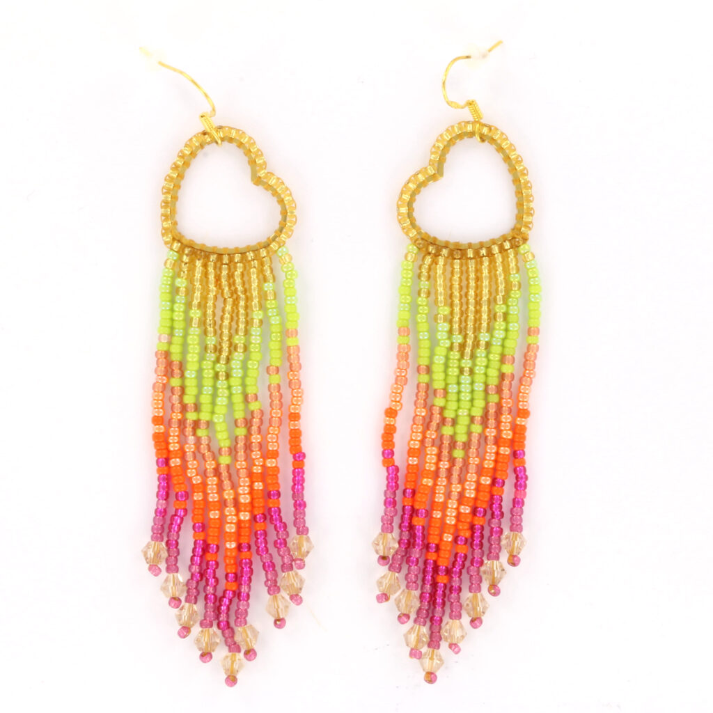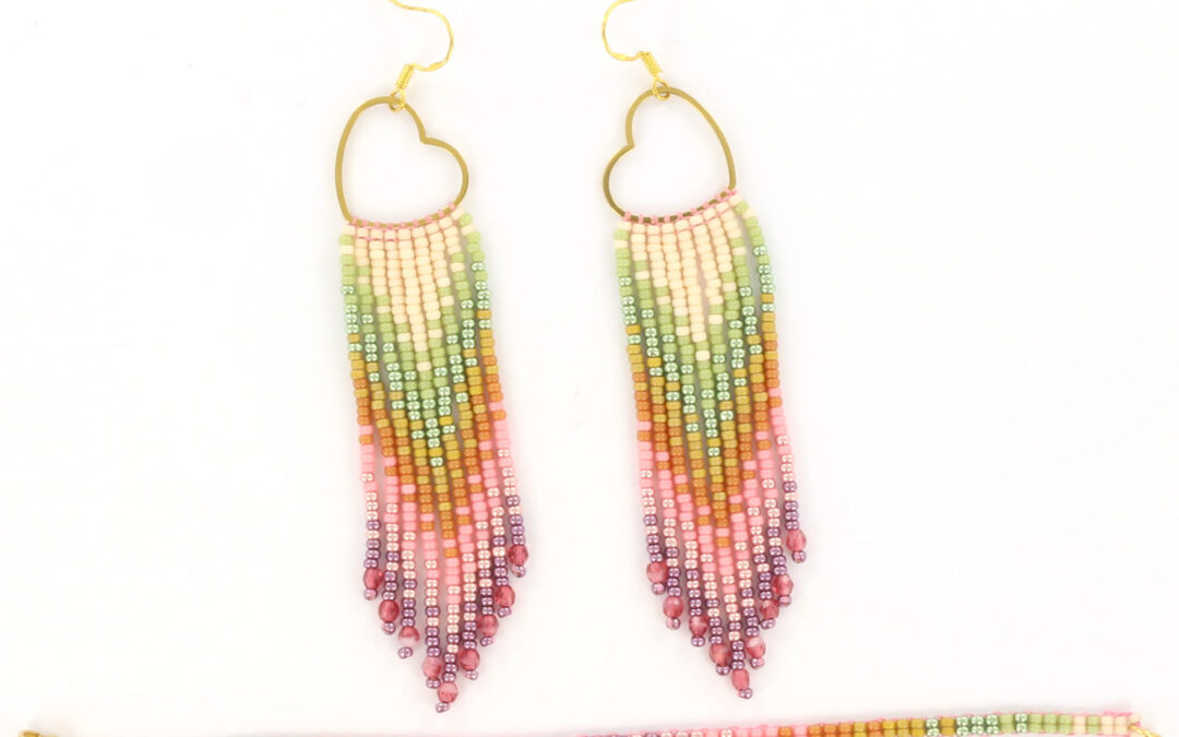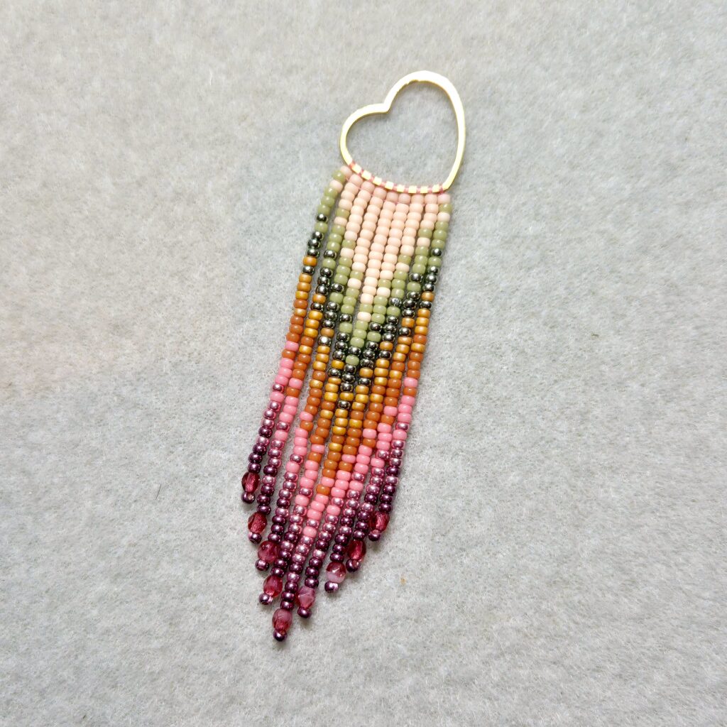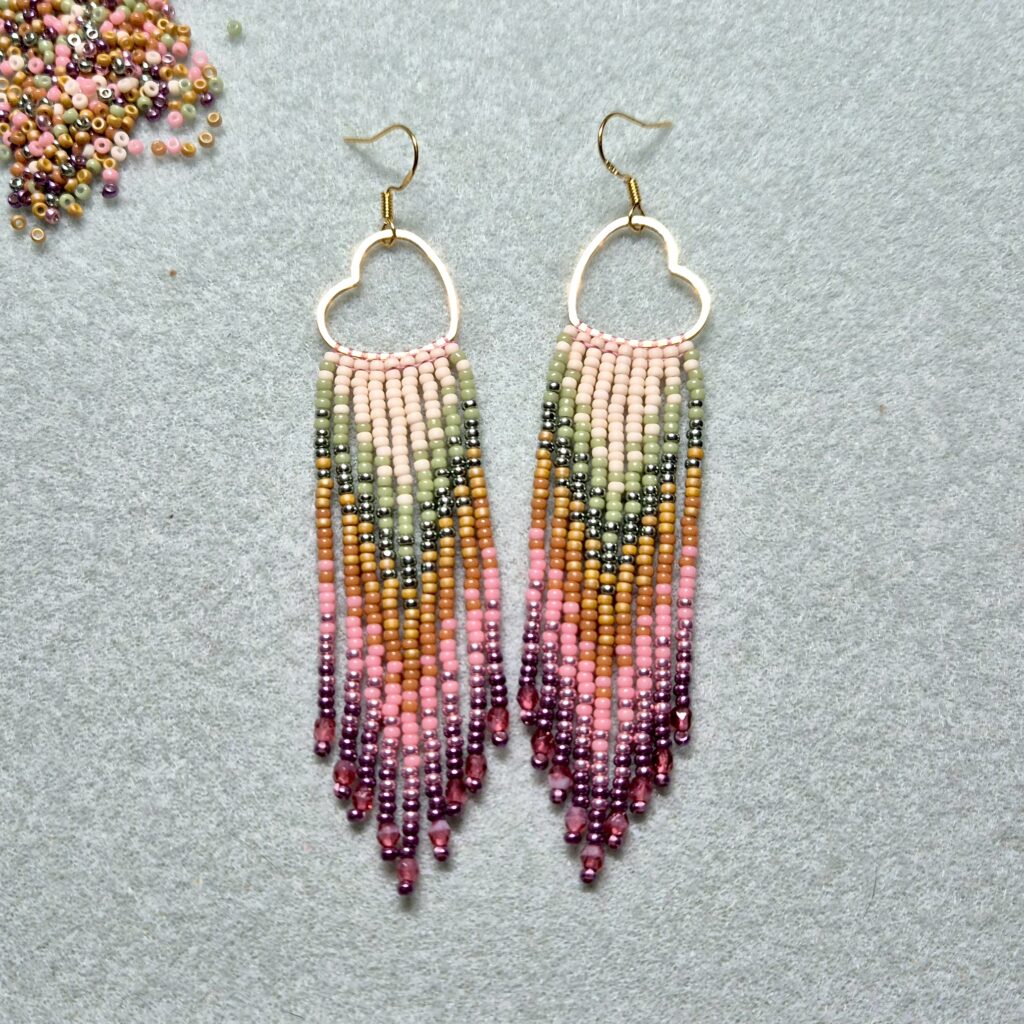 Once you have 9 beads in a row, you can begin the fringe pattern. I always start with the outer edges so I can string the entire earring with one strand.