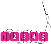 This is the ladder stitch technique. You string the beads in a circle around two beads, then pick up two more beads and string them in another circle around them. To make the bracelet sturdier, we threaded a new thread through the beads again after the bracelet was finished; otherwise, there would be some gaps between the beads.