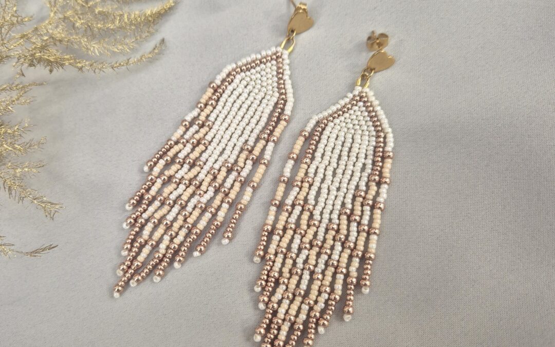 Fringe earrings are fun to make. It’s important to start with a good, clear pattern and, of course, which beads you’ll use. To draw your own pattern, you can find blank fringe earring patterns on Pinterest, for example, that you can color yourself. There are also countless ready-made patterns available for inspiration. For these earrings, we used Miyuki seed beads 11/0 and drew our own pattern.
