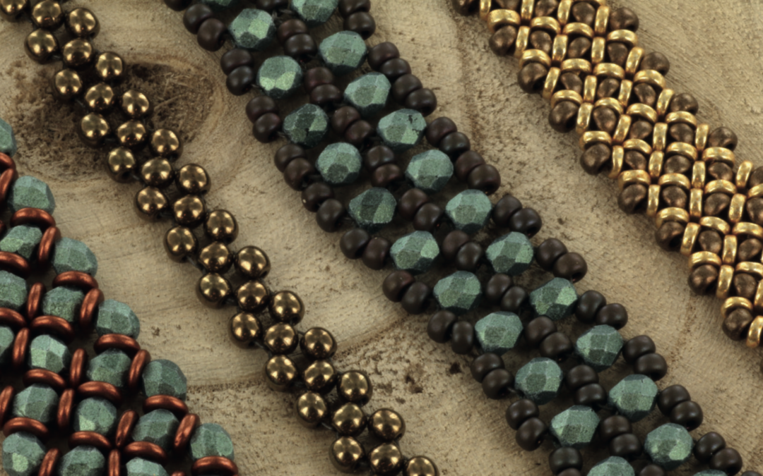 The right-angle weave is a really fun technique where you don’t place the beads tightly together. The beads do fit snugly against each other, but there’s still space between them.