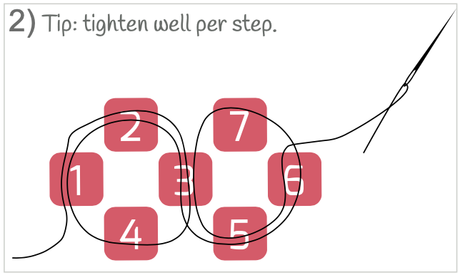 And when your needle and thread reach the top of the bead, work in a circle from left to right.