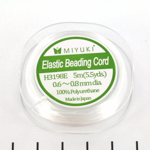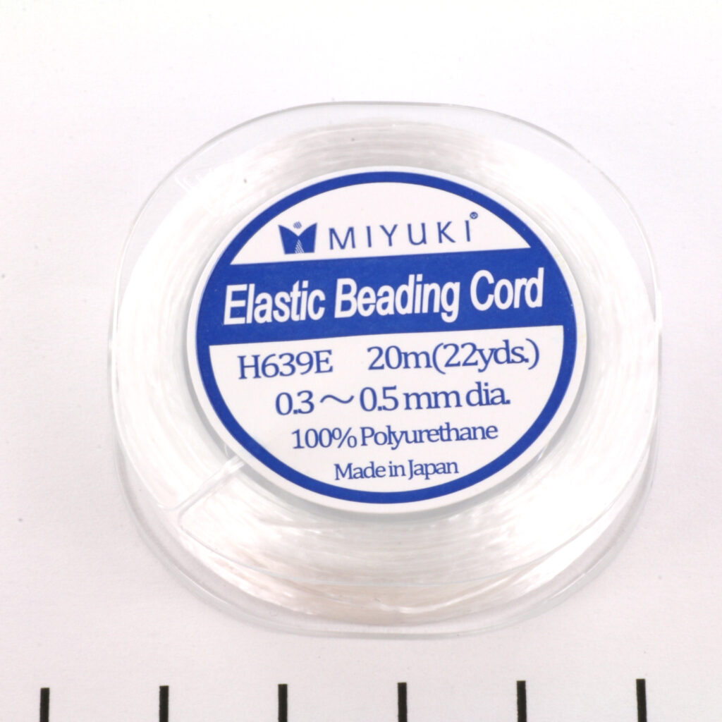 This elastic beading cord from Miyuki is very strong and flexible. The thin 0.3 to 0.5 mm is especially suitable for tilas, while the thicker 0.6–0.8 mm works well for larger rocailles.
