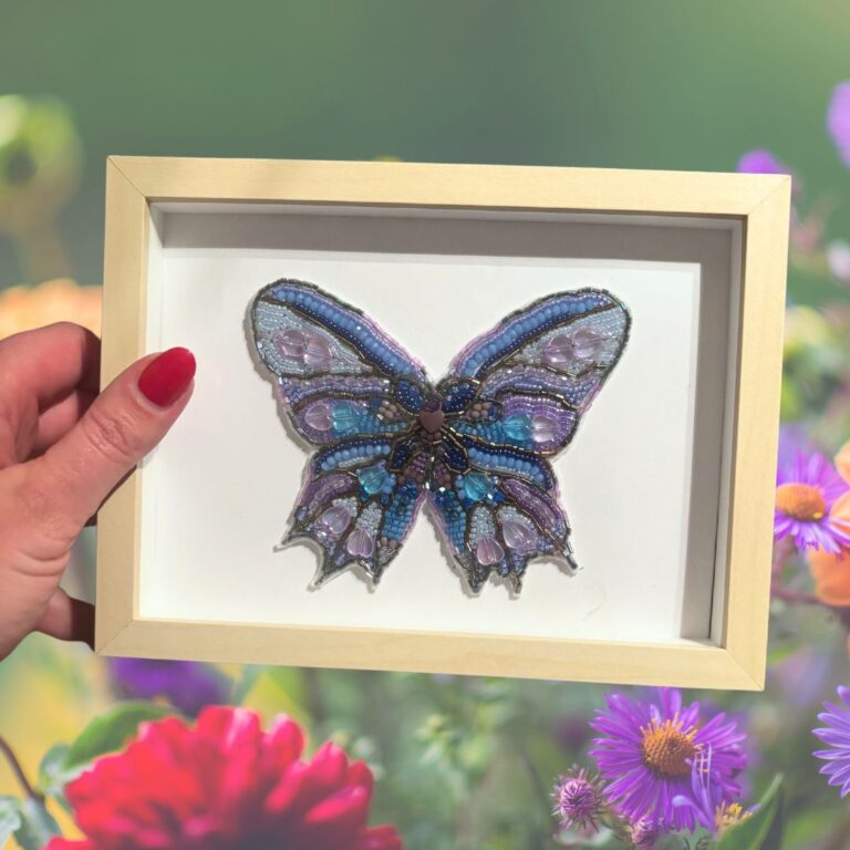 What I can recommend to everyone is a bead mat! Your beads won’t roll or jump away so easily, and you can pick them up very easily with your needle. Once you’re finished, you can easily collect the beads using the little triangles and then store them. Thanks to the triangles, the beads can be easily returned to the correct bag or compartment. Because the edge is sloped, the beads can also be picked up easily from, for example, a mat, so that they end up in the bead tray. This makes things much easier and also saves you from having to vacuum or pick up stray beads.