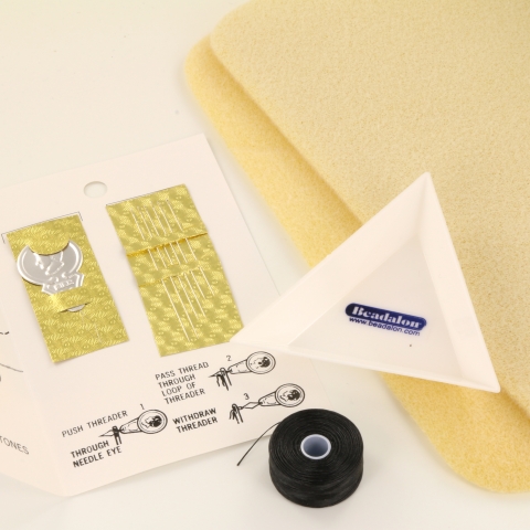 You can order everything separately, but it’s also available as a complete kit: Basic Beading Kit – basics with beading thread.
