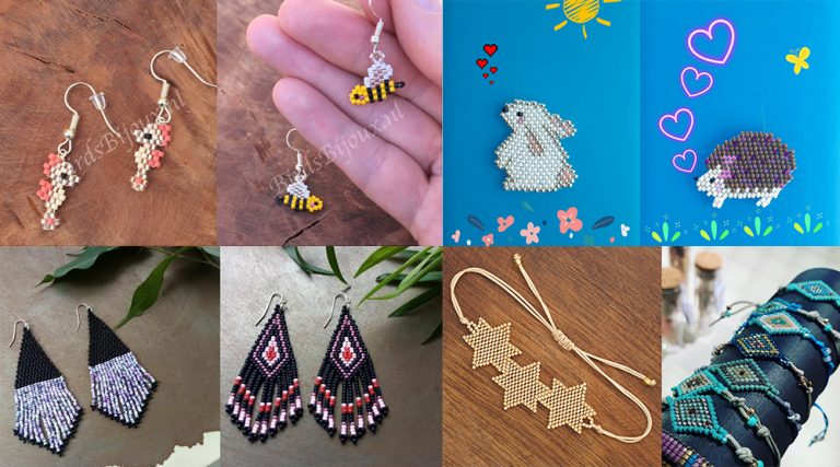 • Brick stitch earrings for a slightly firmer result; otherwise, regular beading thread also works