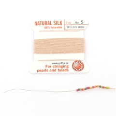 Griffin is a well-known brand of high-quality thread with over 150 years of experience. During production, Griffin beading cords are given the precise number of twists under optimal tension to prevent fraying, tangling, or knotting later on. Thanks to the special needle attached to the Griffin beading cord, you don’t have to struggle with the tricky task of threading a needle. There is no easier or faster way to string pearls, stones, or glass beads.